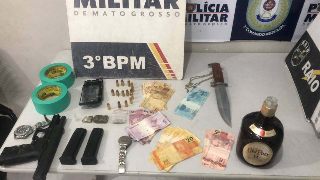 Policiais militares do 3º Batalhão de Cuiabá apreenderam, neste sábado (26.10), dois adolescentes, de 15 e 17 anos, e prenderam dois homens, de 19 e