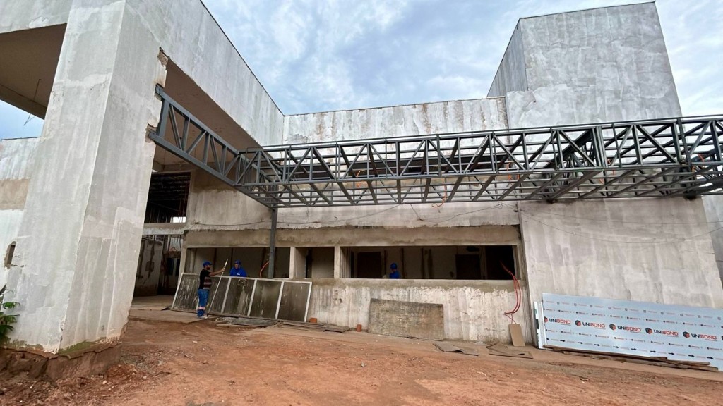 A nova sede do Centro Estadual de Referência de Média e Alta Complexidades (Cermac) e do MT Hemocentro, em construção em Cuiabá, está com 45%