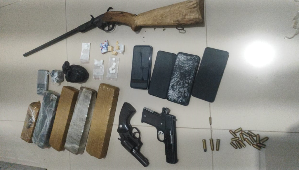 Policiais militares da Força Tática prenderam, na noite deste sábado (09.11), quatro homens suspeitos por porte ilegal de arma de fogo e tráfico de drogas,