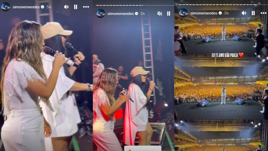 Simaria, de 42 anos, vibrou muito com o show da irmã, Simone Mendes, de 40, com quem teve uma dupla que subiu aos palcos entre 2012