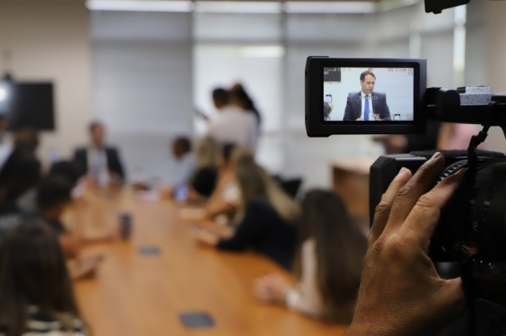 O procurador-geral de Justiça eleito para o biênio 2025-2027, Rodrigo Fonseca Costa, concedeu entrevista coletiva na manhã desta quinta-feira (6), na Sede das Promotorias de