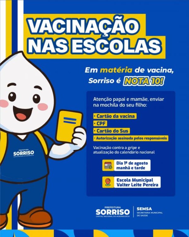 A campanha Vacinação nas Escolas segue avançando e, nesta sexta-feira (08), é a vez da Escola Municipal Valter Leite Pereira receber a equipe de imunização