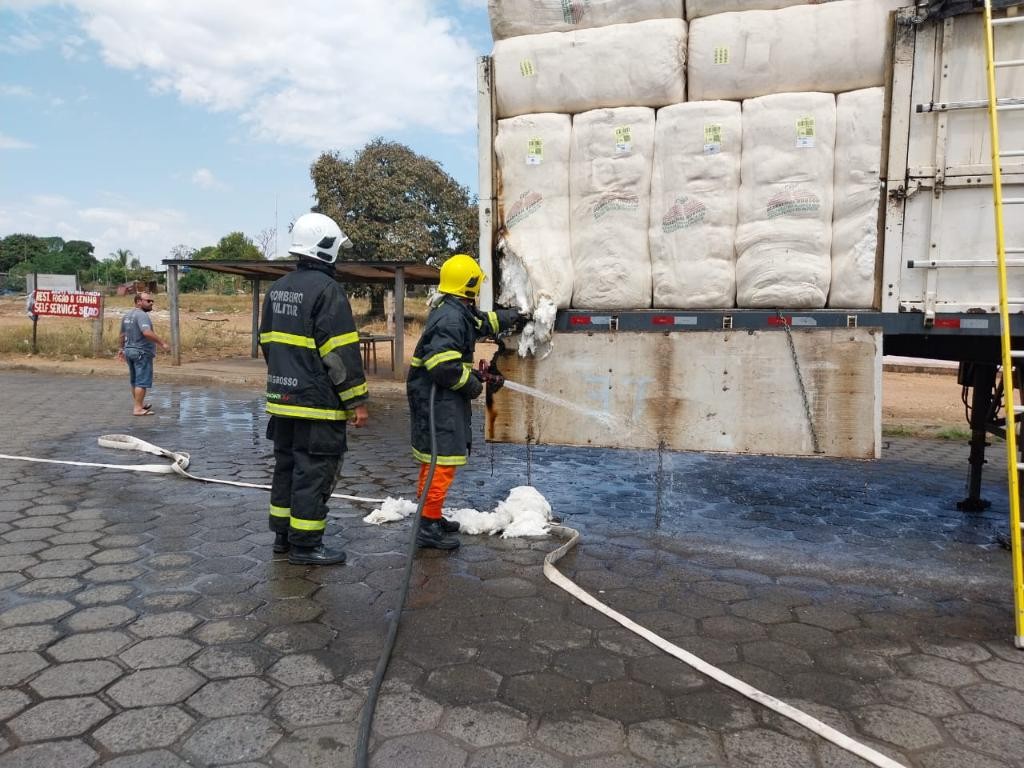 O Corpo de Bombeiros Militar de Mato Grosso (CBMMT) foi acionado na quinta-feira (4.9), para combater um incêndio em uma carga de pluma de algodão