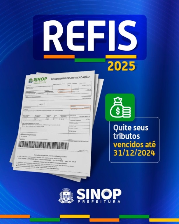 A Prefeitura de Sinop inicia nesta quarta-feira (15), a Campanha Refis 2025, com o objetivo de promover a regularização de créditos tributários e não tributários vencidos