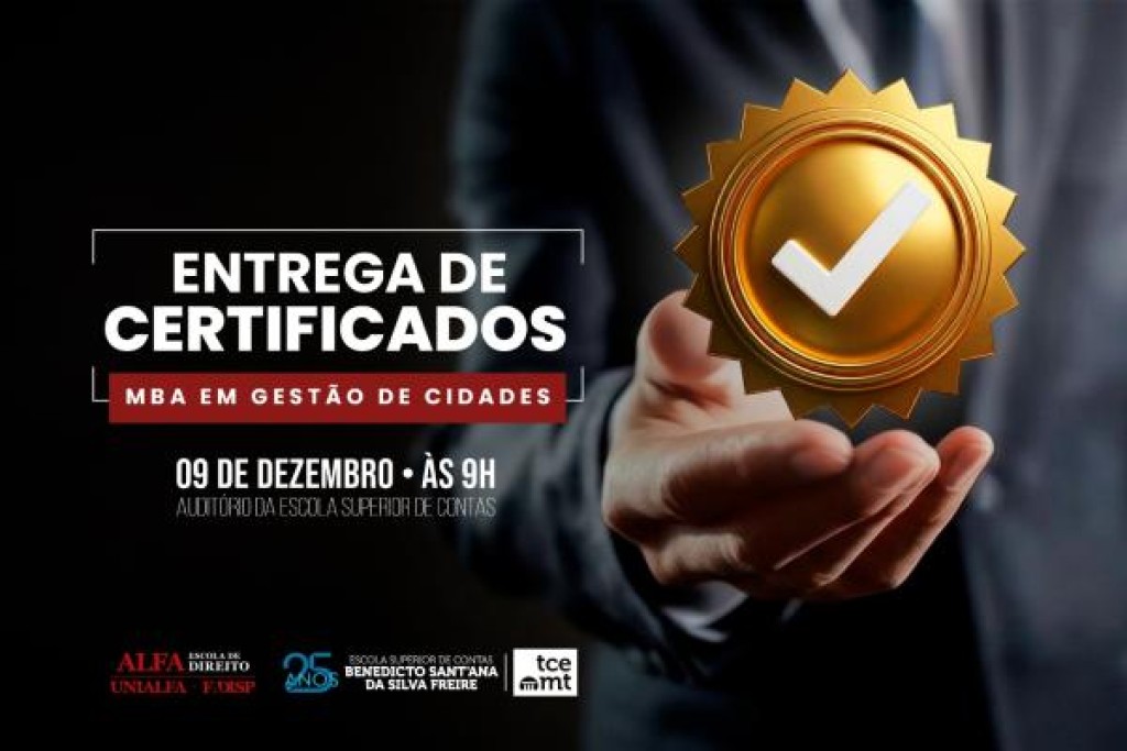 A solenidade de entrega dos certificados do MBA em Gestão de Cidades do Tribunal de Contas de Mato Grosso (TCE-MT) será realizada a partir das 9h