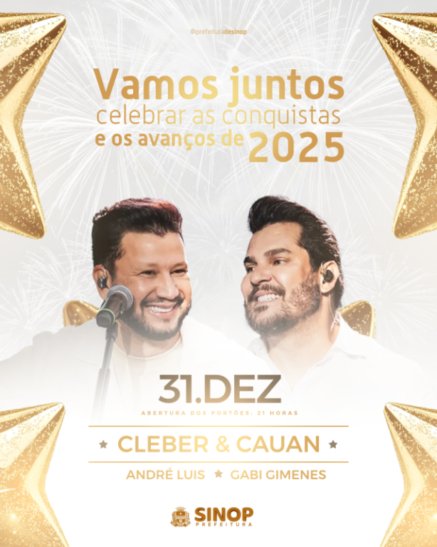 O principal réveillon público do Norte de Mato Grosso acontece hoje (31), no município de Sinop, a Capital do Nortão. A expectativa é de que
