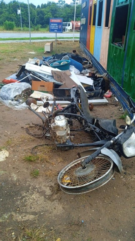 Mais uma vez, a equipe do Eco Sorriso, órgão da Prefeitura que reúne as ações de sustentabilidade, deparou-se, nesta quarta-feira (4 de março), com uma cena triste: em frente ao contêiner do Ecoponto da Noemia Dalmolin, tinha de tudo: bola velha, restos vegetais, forro de PVC e… até uma carcaça de moto.