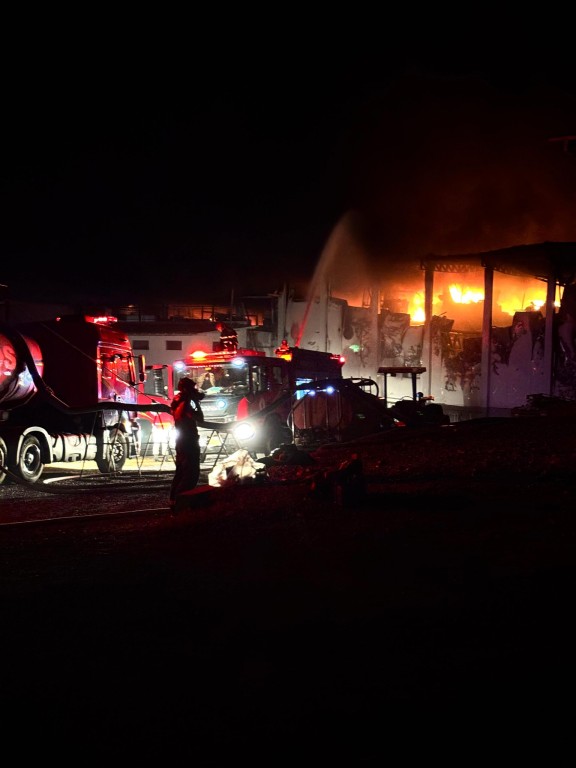 Corpo de Bombeiros combate incêndio em frigorífico em Várzea Grande