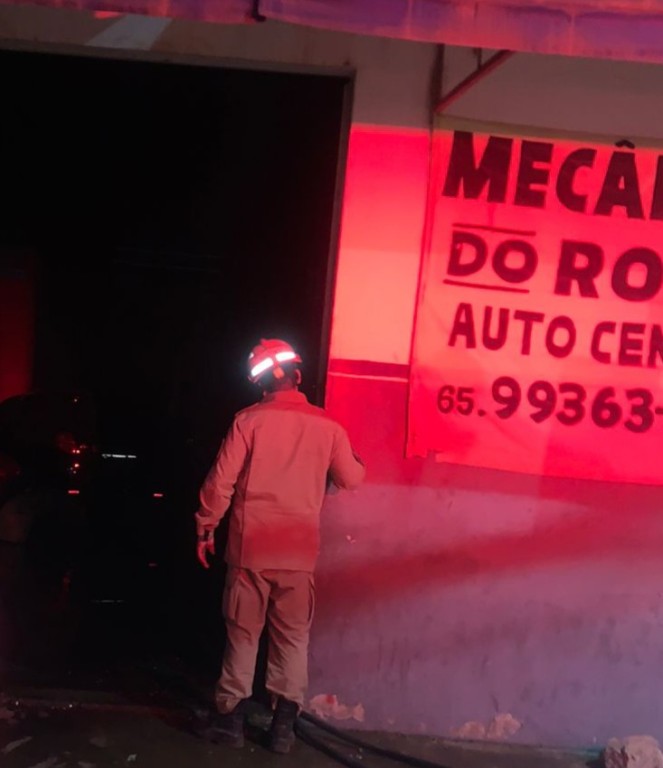 O Corpo de Bombeiros Militar de Mato Grosso (CBMMT) combateu, nesta terça-feira (10.09), um incêndio em uma oficina mecânica localizada no município de Santo Antônio de Leverger (a 33,8 km de Cuiabá).