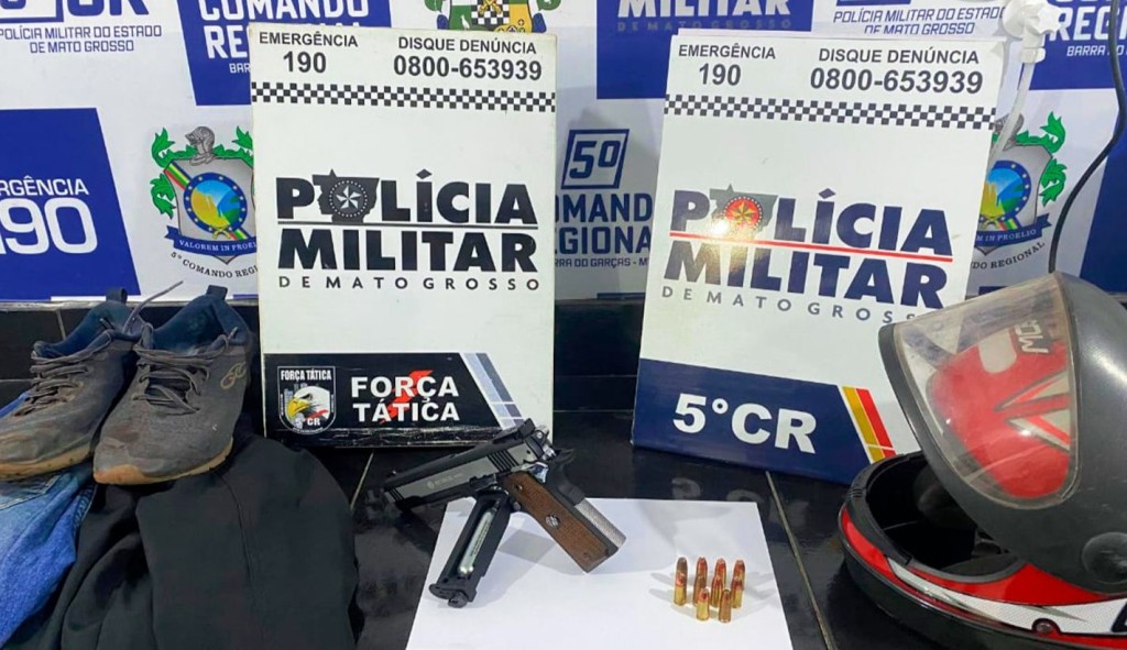 Policiais militares da Força Tática do 5º Comando Regional prenderam dois homens, de 31 e 20 anos, por porte ilegal de arma e munição na noite desta terça-feira (27.08), em Barra do Garças.