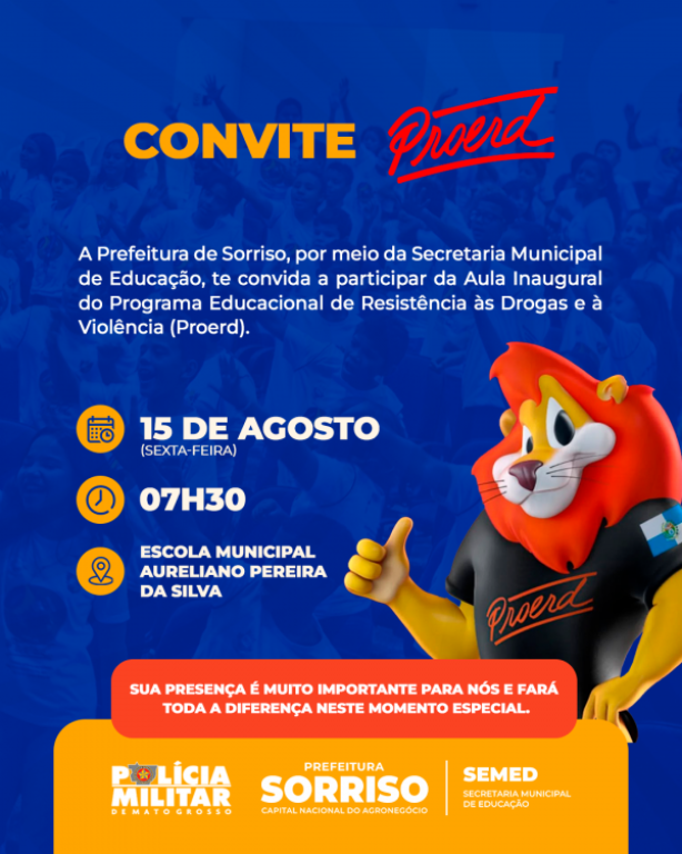 O PROERD, que já existe há mais de 40 anos no Brasil, tem se consolidado como um programa essencial na educação das crianças sobre a importância de escolher caminhos do bem. No Mato Grosso, o programa está em vigor desde 2021, e Sorriso dará início a sua 24ª edição.