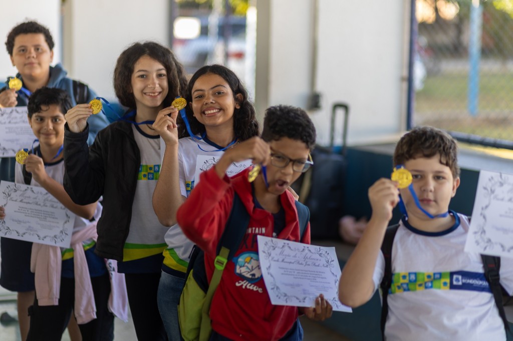 Essa foi a forma que a direção da Escola Municipal encontrou para premiar os alunos que tiveram melhor desempenho e com isso estimular os outros a se esforçarem nos estudos para conquistar medalhas nas próximas provas.