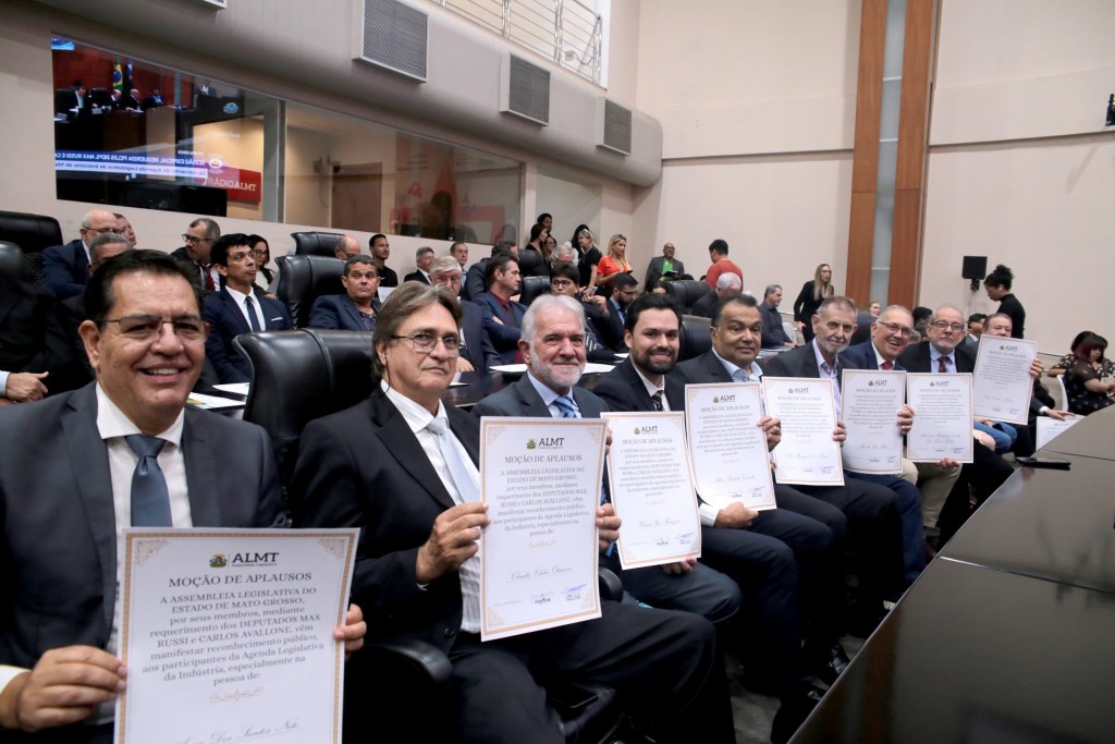 Homenagens – A sessão especial desta quarta-feira (21) também foi destinada às homenagens em razão das comemorações dos 50 anos do Sistema Fiemt e pela participação na elaboração da Agenda Legislativa da Indústria de Mato Grosso 2025 . Três pessoas receberam a Medalha do Mérito Industrial “José Garcia Neto” e mais de 60 moções de aplausos foram entregues. Receberam a medalha: Antônio Bornelli Filho, Ednei Blasius e Heitor Trentin.