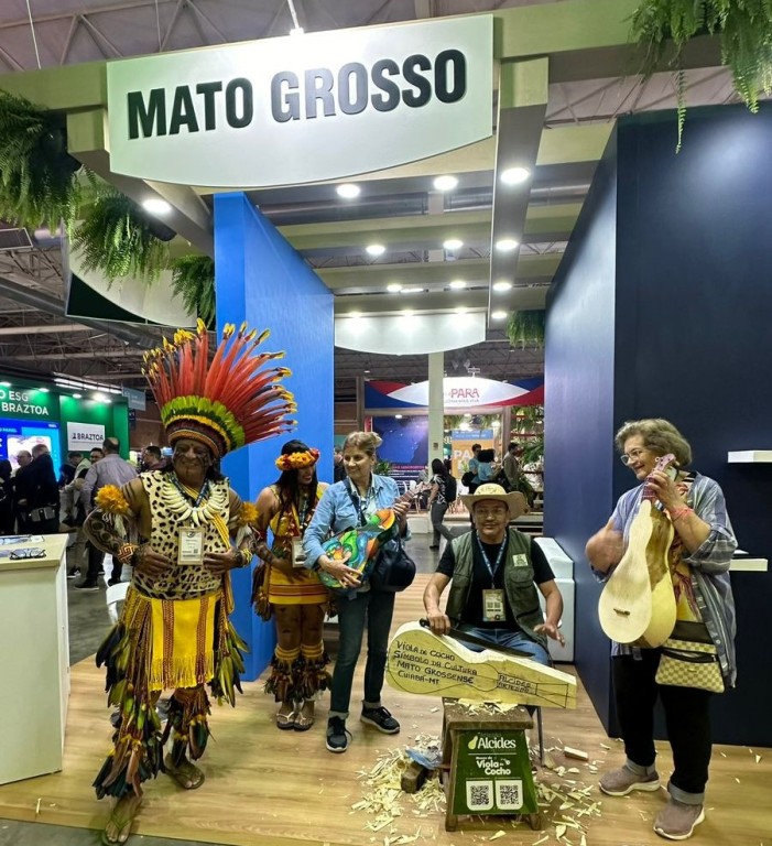 O estande mato-grossense também contou com o projeto Cozinha Show, com o chef Marcelo Cotrim, e a confecção ao vivo de uma viola de cocho pelo mestre Alcides, entre outras ativações realizadas no espaço.