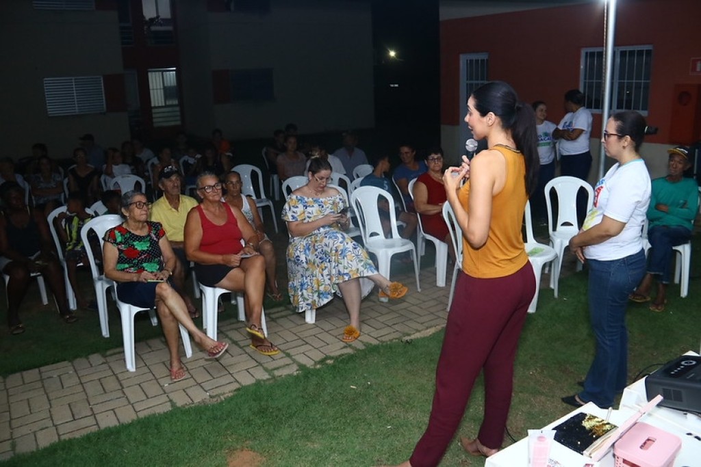 A diretora da Secretaria Municipal de Meio Ambiente e Desenvolvimento Sustentável, Rúbia Naves, participou da ação de educação ambiental promovida na noite desta quarta-feira (26) e apresentou aos moradores orientações sobre conservação do espaço coletivo, manejo adequado de resíduos e prevenção de problemas ambientais. Ela enfatizou a importância das práticas diárias para manter o residencial organizado e seguro. “Nós, do Meio Ambiente, recebemos o convite para participar dessa ação e falamos da importância da conservação do espaço. Eles têm aqui um espaço grande, um espaço coletivo. Falamos também da importância do resíduo, de armazenar o resíduo de forma correta”, afirmou.