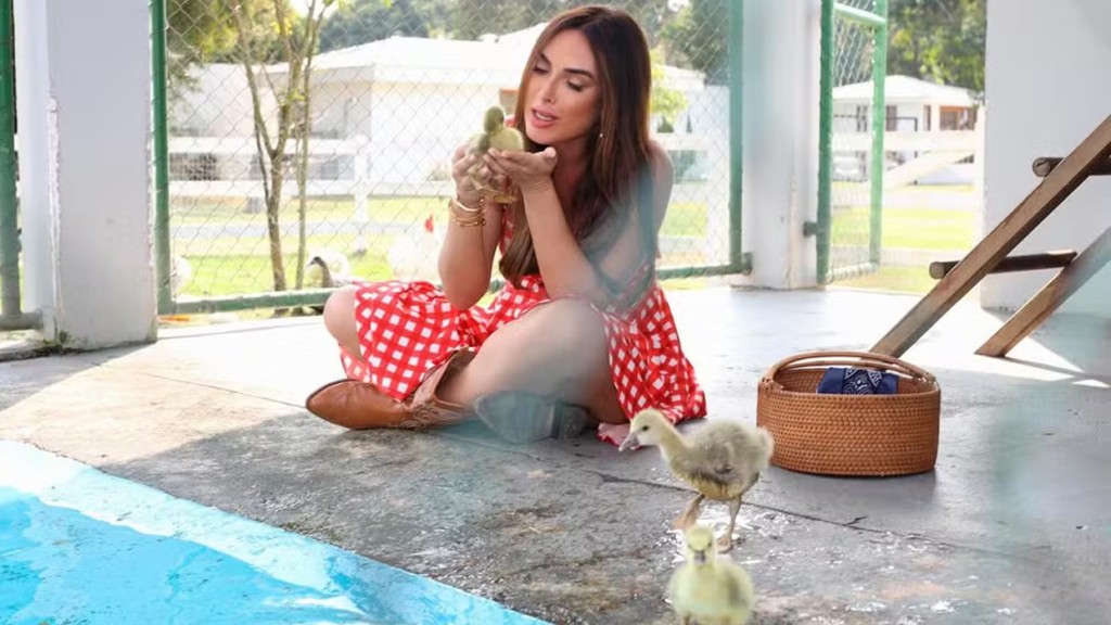Nicole Bahls, de 38 anos, ampliou a arquitetura de seu sítio para abrigar os filhotes de patos e gansos. A modelo e apresentadora contou em seu Instagram, nesta terça-feira (1), que fez “casa própria” para os animais, e disse ter sido um presente.