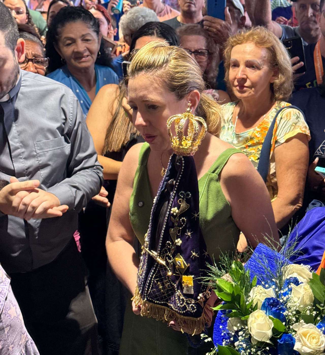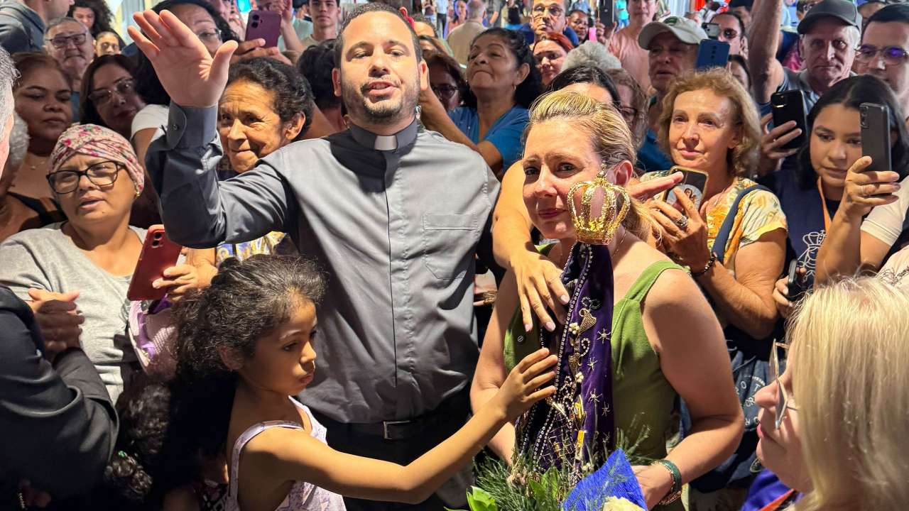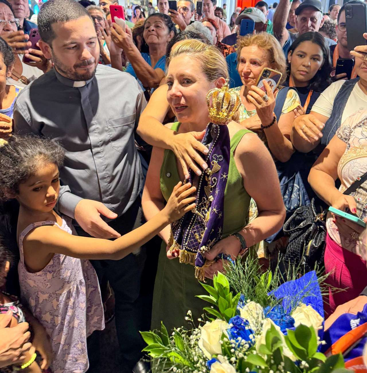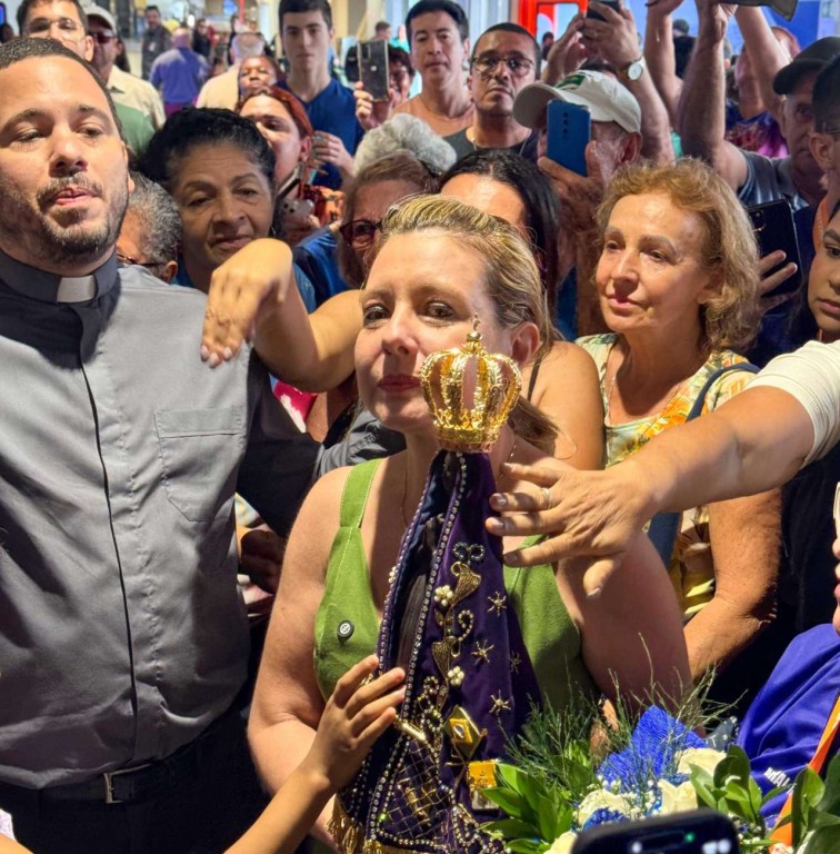 A prefeita de Várzea Grande, Flávia Moretti (PL), participou da acolhida da imagem peregrina de Nossa Senhora de Aparecida, no Aeroporto Marechal Rondon, na manhã deste sábado (12), em Várzea Grande. A imagem, que veio direto do Santuário Nacional de Nossa Senhora Aparecida, em São Paulo, foi acolhida por munícipes e pela prefeita em uma rápida solenidade que emocionou os participantes.