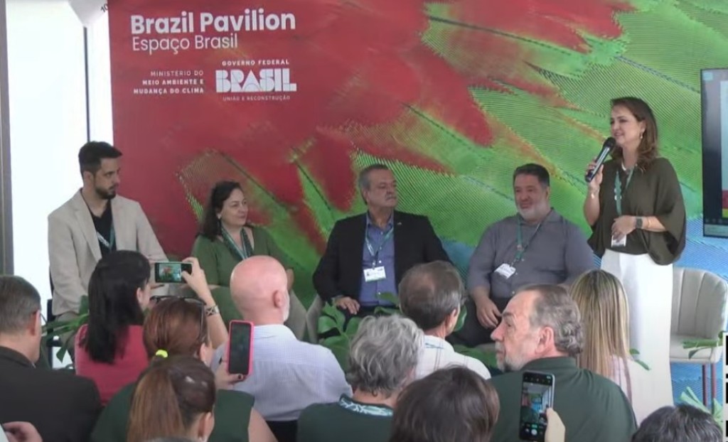 A explanação foi realizada no Espaço Brasil, do Ministério de Meio Ambiente e Mudanças Climáticas, com a presença de expectadores brasileiros e estrangeiros.