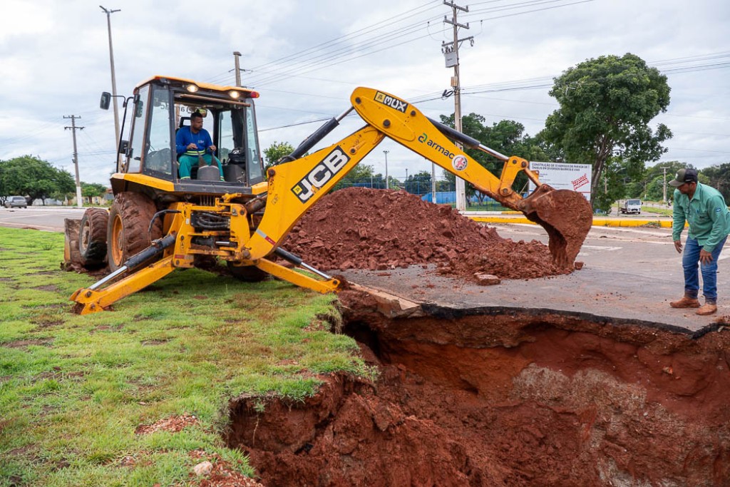Ainda nesta terça-feira (11), a empresa Amil, responsável pela execução da obra de duplicação da alameda das Rosas e da rotatória com a rua Dom Pedro II, encaminhou equipes e maquinários para o local. “A Amil iniciou um trabalho paliativo de reparo porque a prioridade, neste momento, é garantir segurança para liberar o trânsito”, explicou o secretário Municipal de Infraestrutura, Lucas Corrente Luz.