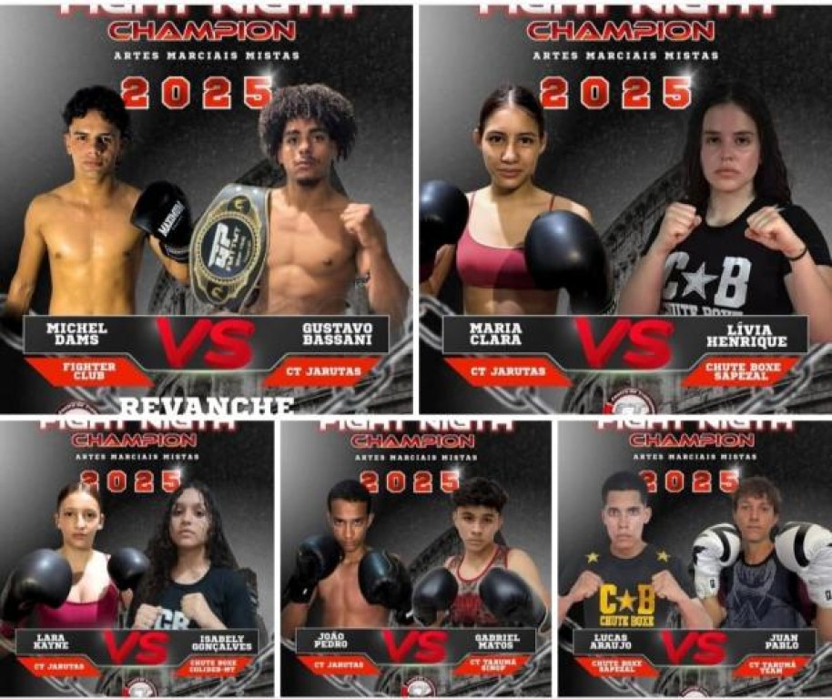 Além dos representantes locais, o evento reunirá lutadores de Sapezal, Sinop, Tapurah, Vera e Colíder. O Fight Night Champion é realizado pelo CT Jarutas, com apoio da Prefeitura de Sorriso, por meio da Secretaria Municipal de Esporte, Lazer e Juventude.
